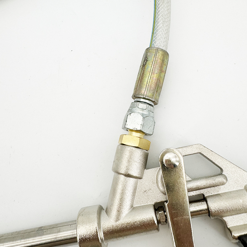• High-Mobility Extension Hose: The included specialized reinforcement hose provides the flexibility needed to navigate complex angles and tight jobsite corners that fixed-barrel guns simply cannot reach.
